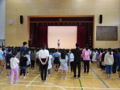 10月5日、朝の活動時間に児童集会を行いました。後期委員会の委員長が自己紹介と各委員会の活動の様子を発表しました。委員長を中心に充実した活動を期待します。