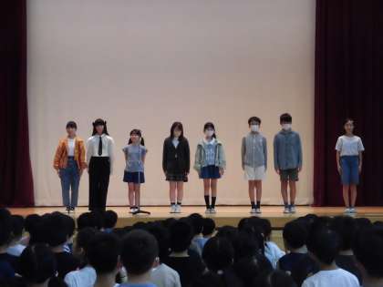 10月5日、朝の活動時間に児童集会を行いました。後期委員会の委員長が自己紹介と各委員会の活動の様子を発表しました。委員長を中心に充実した活動を期待します。