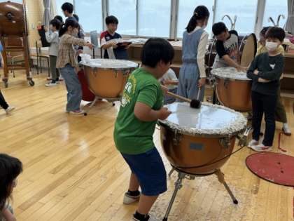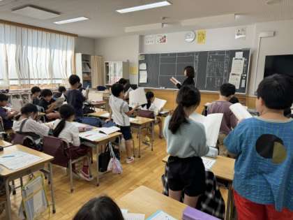 3年生の授業風景を紹介します。1組は第2音楽室で理科授業「音の実験」に取り組みました。2組は国語の授業で「ちいちゃんのかげすくい」を音読しました。3組は体育の授業でのマット運動の様子です。