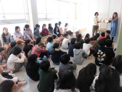 10月13日、朝の活動時間に保護者・地域の方によるPTAお話し会が行われました。学年によっては2クラス合同での読み聞かせでした。子どもたちは熱心にお話に集中し、穏やかな時間を過ごしました。
