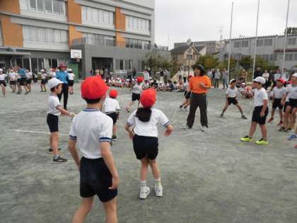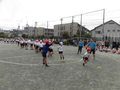 10月14日、金木犀の香り漂う秋晴れのスポーツ日和、長縄跳び大会を行いました。子どもたちはスポーツの秋を満喫しながらクラス目標達成のために精一杯頑張りました。目標を達成できたクラスがあり、残念ながら目標回数に届かなかったクラスもありました。今までの努力を糧として今後の学校生活に生かしてほしいと思います。参観していただいたたくさんの保護者・地域の皆様、ありがとうございました。