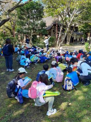 次大夫掘公園に着きました。古民家を見学しながら、昔の暮らしの様子を学習しました。