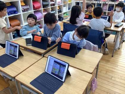 生活科の学習では、秋のお店についてのグループでの話し合いを行いました。