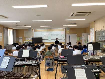 6年1組の授業風景を紹介します。音楽の時間に合唱の音取りに取り組んでいる様子です。