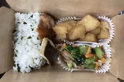 4年生は、お弁当容器に入った給食を食べました。