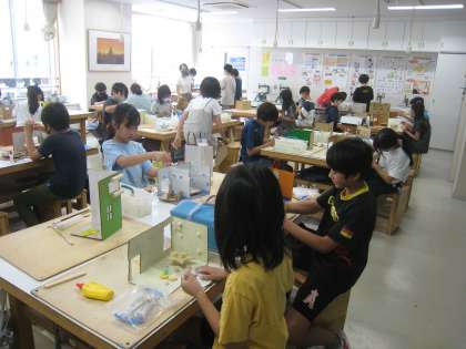 自分が行ってみたい理想のカフェをイメージして、様々な材料を使いながら私のお店を作りました。子どもたちの夢があふれたカフェを展覧会でご覧になってください。