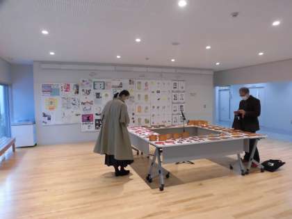 1階ギャラリーに6年生が日光林間学園の際につくった日光彫りを展示していますので展覧会にお越しの際にはご覧になってください。また、学び舎連携活動として世田谷中学校の生徒作品(平面)も展示しています。