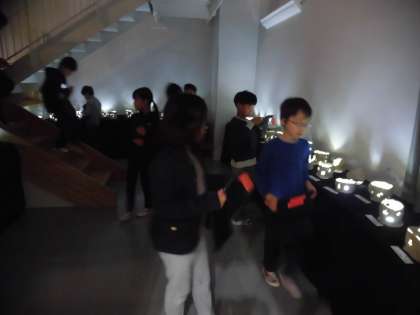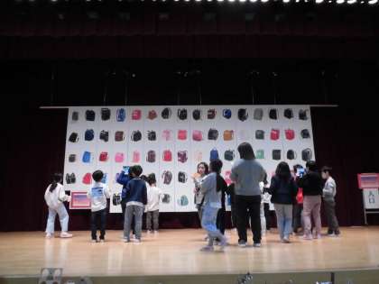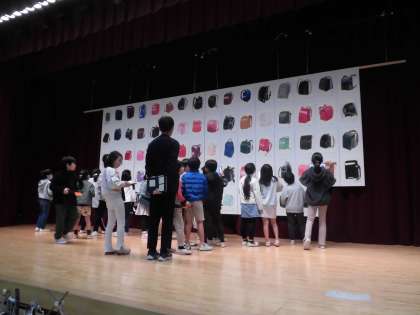 11月17日、展覧会2日目、児童鑑賞日でした。3年生は美術館のような体育館の様子に圧倒されつつクラスごとに各学年の作品をじっくり鑑賞することができました。いろいろな作品の色や形から作者の考えをくみ取ろうとしている呟きがあちこちから聞こえてきました。