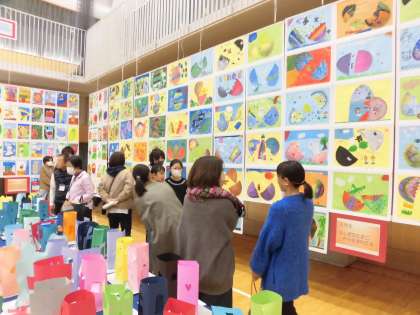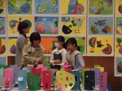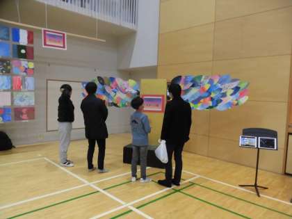 11月18日、1・2校時に6年生による展覧会ガイド活動を行いました。6年生は、展示されている作品についてより見方を深めていただくために、学年ごとの題材について調べ、まとめたことを分かりやすく伝えるために原稿を作りました。子どもたちは説明したことに対して感謝されたことが大いに励みになったようです。