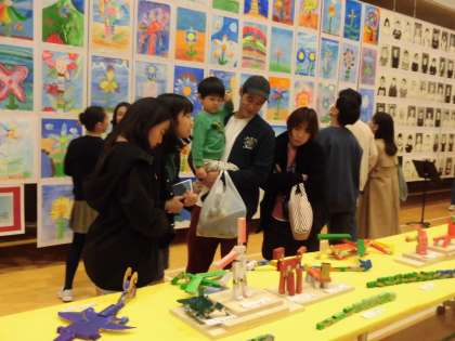 11月18日、1・2校時に6年生による展覧会ガイド活動を行いました。6年生は、展示されている作品についてより見方を深めていただくために、学年ごとの題材について調べ、まとめたことを分かりやすく伝えるために原稿を作りました。子どもたちは説明したことに対して感謝されたことが大いに励みになったようです。