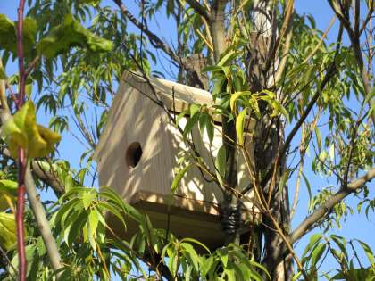 愛鳥委員会の6年生が作った巣箱をせせらぎ近くにある木に設置しました。まだ野鳥は来ていませんが、巣箱に住み始めることを楽しみにしています。