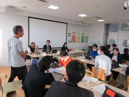 研究授業の後は研究協議会を行い授業研究を深め、専属の大学教授の先生からボールゲームの学習内容などについて指導・助言をいただきました。