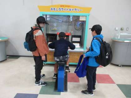 5年生がつくばエキスポセンターで先端科学アミューズメントの疑似体験を楽しんでいる様子を紹介します。