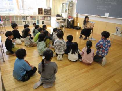 12月9日、朝の活動時間に保護者・地域の方による読み聞かせが行われました。子どもたちは熱心にお話を聞いていました。