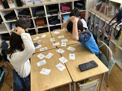 国語科「冬の楽しみ」で、冬かるたを作りました。そして、作った後にかるた大会を開催!