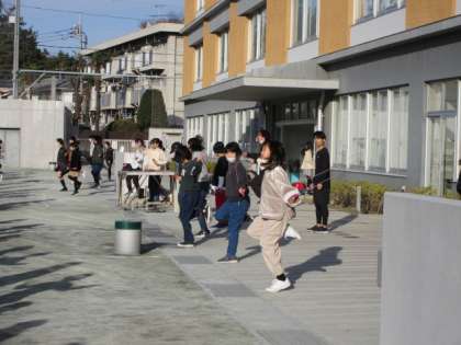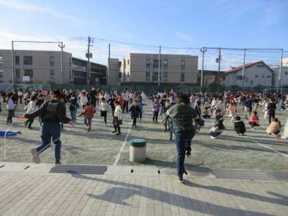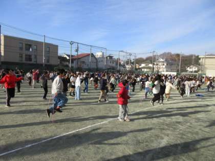 12月20日、朝の活動時間にわくスポを行いました。寒空の下、子どもたちはピョンピョン期間に取り組んできた成果を発揮すべく一所懸命に縄跳びをしていました。体育委員の子どもたちが様々な跳び方の見本を示す企画もありました。