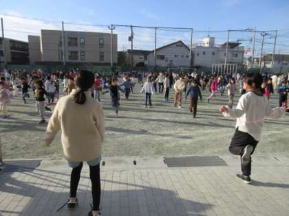 12月20日、朝の活動時間にわくスポを行いました。寒空の下、子どもたちはピョンピョン期間に取り組んできた成果を発揮すべく一所懸命に縄跳びをしていました。体育委員の子どもたちが様々な跳び方の見本を示す企画もありました。