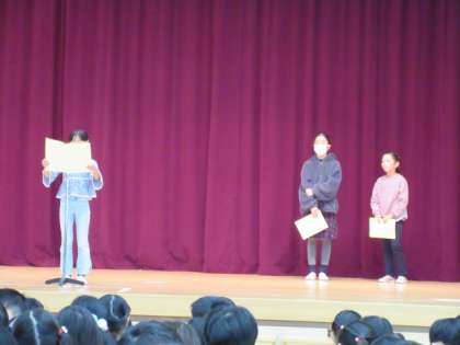 12月25日、2学期の終業式を体育館で行いました。校長先生からは「自分の力を生かす」「お互いを認める」「とにかくやってみる」という点について2学期を振り返りましょうというお話がありました。児童代表の言葉では3年生が2学期に頑張ったことをしっかりと発表できました。全校児童が歌う校歌が体育館に響き渡り、2学期を締めくくりました。明日から始まる冬休み、ご家族で過ごす時間を大切にして充実した時間をお過ごしください。