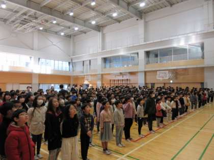 12月25日、2学期の終業式を体育館で行いました。校長先生からは「自分の力を生かす」「お互いを認める」「とにかくやってみる」という点について2学期を振り返りましょうというお話がありました。児童代表の言葉では3年生が2学期に頑張ったことをしっかりと発表できました。全校児童が歌う校歌が体育館に響き渡り、2学期を締めくくりました。明日から始まる冬休み、ご家族で過ごす時間を大切にして充実した時間をお過ごしください。