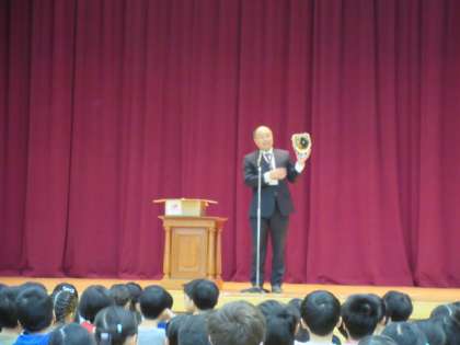 1月9日、冬休みが終わり3学期が始まりました。始業式の中で、校長先生は能登半島地震で被災されている方々に配慮した話、MLB大谷翔平から寄贈されたグローブの紹介、夢を追いかけることの大切さなどを話しました。2年生代表児童の言葉、校歌斉唱では、子どもたちが新たな気持ちで新学期を迎えたことが伝わってきました。保護者・地域の皆様、本年も学校運営にご理解・ご協力をよろしくお願いいたします。