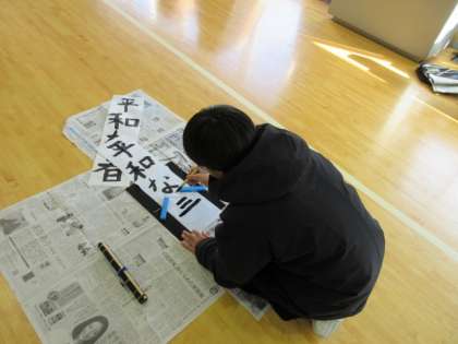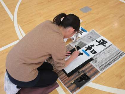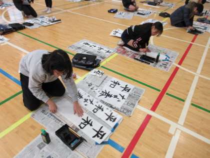 1月10日、6年生の子どもたちが厳かな雰囲気の中で書き初め大会に挑みました。冬休みに練習してきたお題は「平和な春」。皆、新年の願いを込めて真剣に筆をふるいました。たくさんの力作が仕上がりました。来週の書き初め展が楽しみです。
