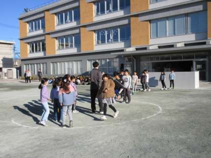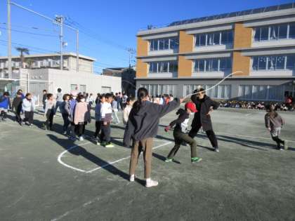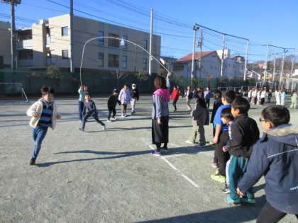 1月25日、朝の活動時間にわくスポ(長縄の記録会)に取り組みました。子どもたちは寒さに負けず、クラスの目標回数をクリアするために頑張って跳びました。