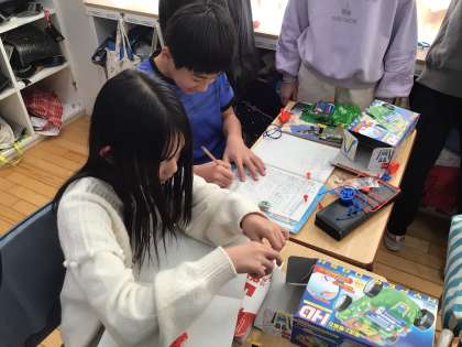理科「電流のはたらき」で、電磁石の性質を調べています。電磁石の強さはどのようにしたら強くなるのか予想し、確かめることができました。