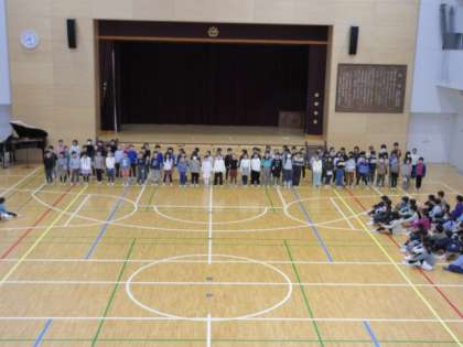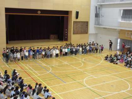 2月1日、朝の活動時間に音楽集会を行いました。今回は「風も雪も友だちだ」という曲を2年生が発表して、それから全校の子どもたちで大きな声で歌いました。とても元気な声が朝の体育館に響きました。