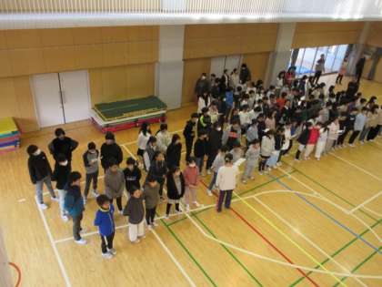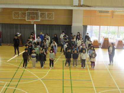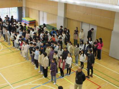 2月1日、朝の活動時間に音楽集会を行いました。今回は「風も雪も友だちだ」という曲を2年生が発表して、それから全校の子どもたちで大きな声で歌いました。とても元気な声が朝の体育館に響きました。