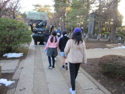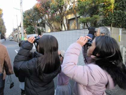 2月8日、今年度最後の夕方探鳥会を行いました。愛鳥委員会の担当児童を含め14名が参加しました。愛鳥ボランティアの講師の方から豪徳寺近辺で見られる野鳥について説明していただき、実際に野鳥の観察を行いました。残雪が残る寒い日でしたが、多くの野鳥を観察することができました。