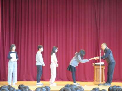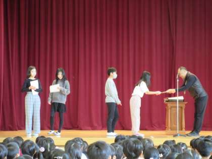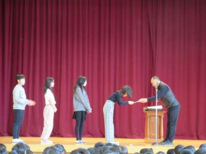 3月4日、全校朝会でたくさんの表彰がありました。東京都学校美術展覧会、区立小学校読書感想文コンクール、世田谷区ハローキャリアワーク、バスケットボールのクラブチーム、サッカーのクラブチーム、人権の花活動(エコ委員会)など様々な分野で活躍した子どもたちを称える賞状、終了証、感謝状をいただきました。これからも子どもたちが特技を伸ばしたり、興味のある活動で大いに力を発揮することを期待しています。