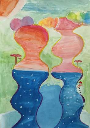 3年生が図工授業で制作した絵の題材「へんてこ山の物語」を紹介します。子どもたちは「へんてこ山」という言葉からイメージを広げて、いろいろな山の形を考え、その山のお話を考えて表しました。これまでに経験した表現方法や新たな表現方法を試しながら楽しく取り組みました。ホームページのみでの紹介となるので、楽しみながらご覧になってください。