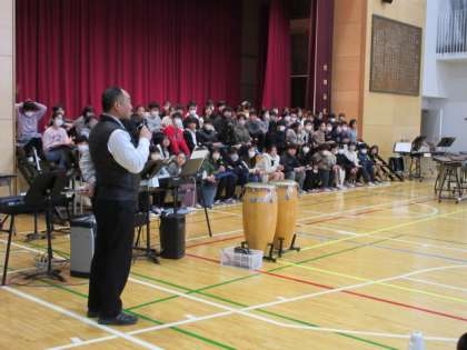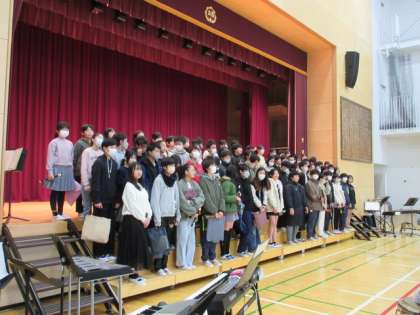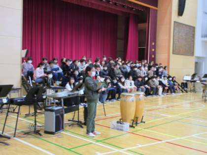 3月9日、1〜5年生が今までお世話になった6年生に感謝の気持ちを込めて6年生を送る会を実施しました。司会は運営委員の4・5年生が担当しました。花のアーチをくぐりながら6年生が入場しました。