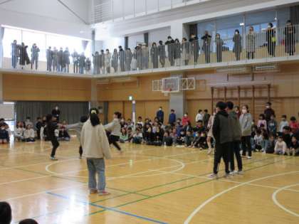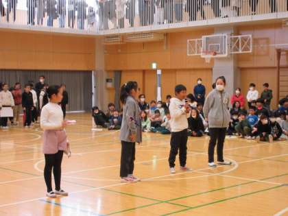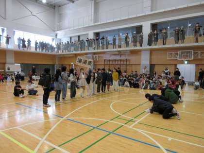 2番目は「漢字の読み方」クイズ、5年生が正解しました。3番目は「ケンカに遭遇した場合にどうするか?」6年生が紳士的に対応して勝ちました。ユニークな出し物でみな楽しみました。