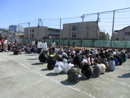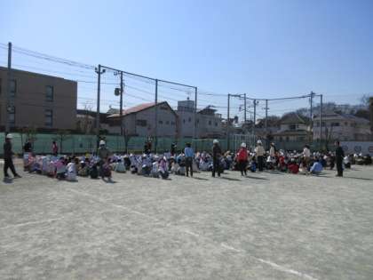 3月11日、昼休みに地震を想定した避難訓練を行いました。子どもたちには予告なしでの実施でしたが近くにいた先生方の指示に従い、校庭や廊下にいても混乱なく避難することができました。子どもたちは、校庭に集合し校長先生から13年前に起きた東日本大震災のこと、地震への備えの大切さについての話がありました。最後に、被災された方や現在も行方不明の方への哀悼の思いを込めて黙祷をしました。