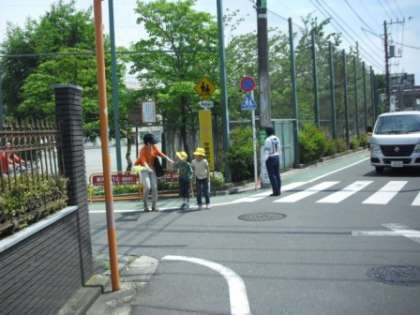 5月11日(金)1年生の交通安全教室がありました。北沢警察署から2人の警察官の方に来ていただき、道路の横断の仕方を教えていただきました。その後、学校の外に出て、学校周辺の路側帯の歩き方、横断歩道の渡り方などを、実際に体験しました。お手伝いしてくださったお母様方、ありがとうございました。