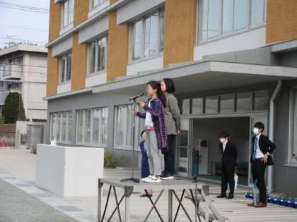 4月8日、令和6年度の着任式と始業式を校庭で行いました。新しく城山小に赴任した教職員の紹介があり、子供たちは元気な声で挨拶しました。始業式では、校長先生の話、6年生の代表児童による新学期に向けた決意の言葉、校歌斉唱などがあり、子供たちは新たな出発に胸躍らせていました。