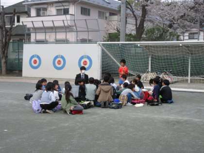 始業式後、新しい担任の先生のもと、初めての学活がありました。子供たちは新しい友だちと一緒に担任の先生の話を聞いていました。
