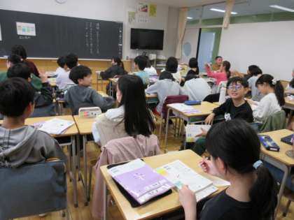 4月9日、最高学年としての学校生活が本格的にスタートしました。気持ちを引き締めて新しい教科書に名前を書いている様子です。