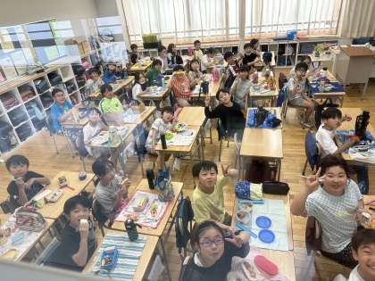 一枚目の写真は、遠足翌日のお弁当持参の日の様子です。二日続けてのお弁当作りでご迷惑をおかけしましたが、こんなにも楽しそうに食べていました。二枚目の写真は、理科の気温調べの様子です。学習中でもこんなにも楽しそうに取り組めています。
