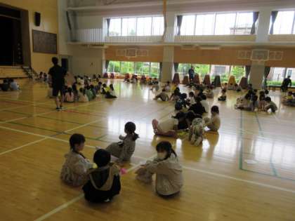 学校探検が終わったグループは体育館へ戻り、振り返りをして終了しました。2年生は今回の経験を活かしてしっかり学校生活を送ってほしいです。1年生はスタンプラリーで回った学校の施設などを早く覚えられるといいですね。