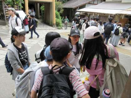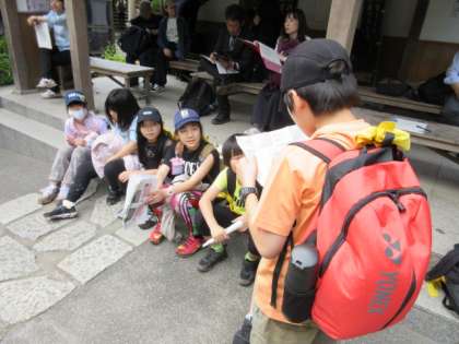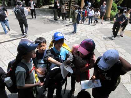 銭洗弁財天に到着したら6年生がクイズを出して皆がそれぞれ答え、お金を洗いました。ご利益があるといいですね。
