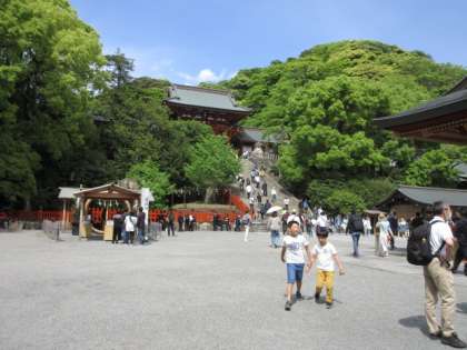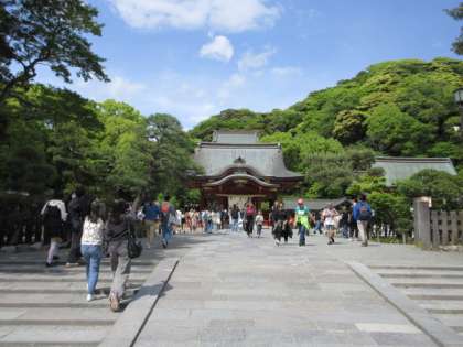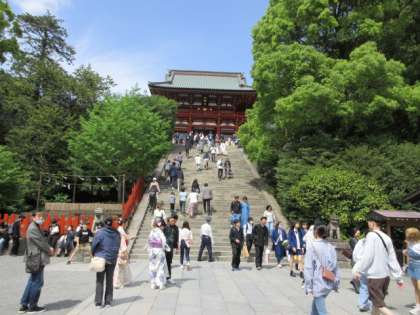 鶴岡八幡宮は観光客や小中校の遠足で大変な賑わいでした。全班が揃ったので学校へ戻ります。