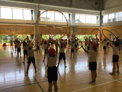 5月10日、運動会に向けて、本格的に練習がスタートしました。3年生は、フラフープを使った表現運動に挑戦します。実行委員、ダンスリーダーを中心に児童たちでつくる表現運動をサポートしていきます。