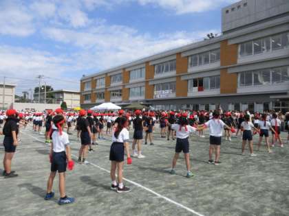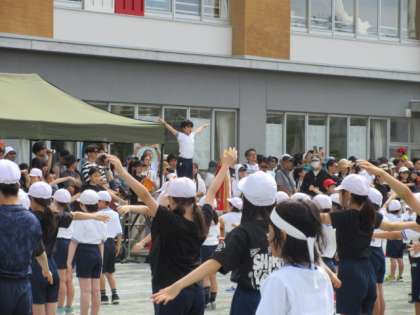 5月25日、五月晴れの空の下、盛大に運動会を開催することができました。今年のスローガンは「主役は自分たちだ 一致団結 2024 城山運動会」開会式では、優勝旗・準優勝杯返還、選手宣誓、スローガン発表、校長先生の話、はじめの言葉、準備運動がありました。その様子をご紹介します。