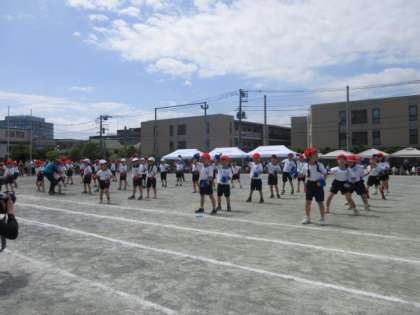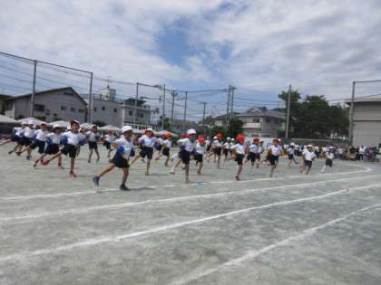 1年生は小学校で初めての運動会で表現運動「チグハグ」に取り組みました。皆、音楽に合わせて元気よく楽しそうに踊っていました。