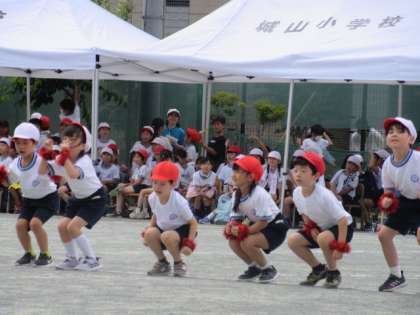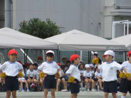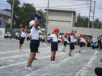 1年生は小学校で初めての運動会で表現運動「チグハグ」に取り組みました。皆、音楽に合わせて元気よく楽しそうに踊っていました。