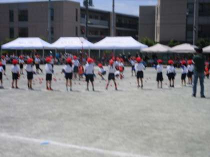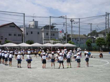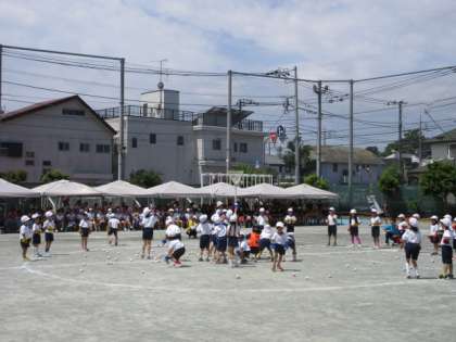 1年生は学年種目「Dancing☆玉入れ」に取り組みました。子どもたちは元気よく音楽に合わせて踊ってから玉入れを行い、入った個数を数えるときはすごく盛り上がりました。