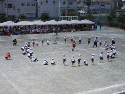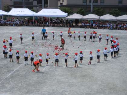1年生は学年種目「Dancing☆玉入れ」に取り組みました。子どもたちは元気よく音楽に合わせて踊ってから玉入れを行い、入った個数を数えるときはすごく盛り上がりました。