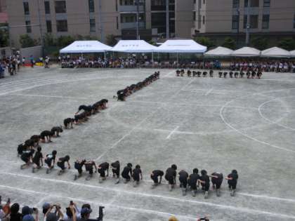 5・6年生は合同で表現運動「唱!Show!ソーラン!」を演じました。子どもたちは伝統的なソーラン節と現代的なダンス表現をミックスさせた演技に取り組み、圧倒的な迫力で観客を魅了しました。